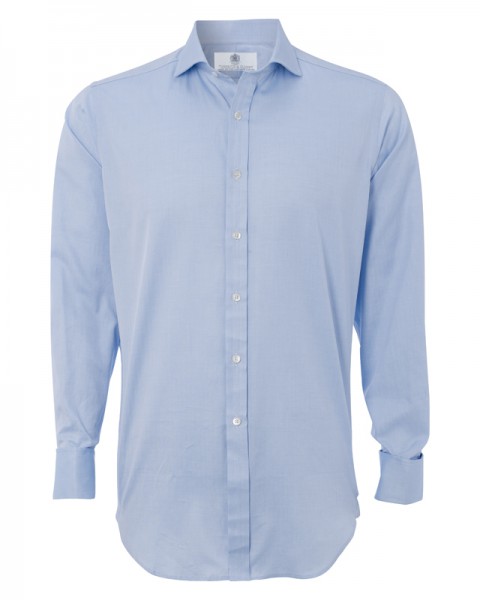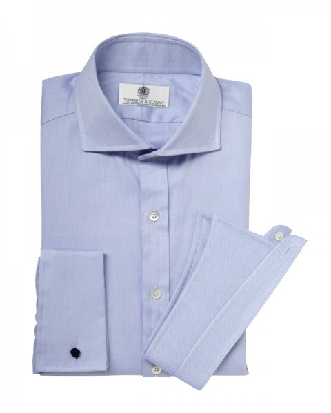 The archetypal Glenny business shirt, in twelve plain colours and two different weaves: pinpoint and herringbone. Impeccably correct.