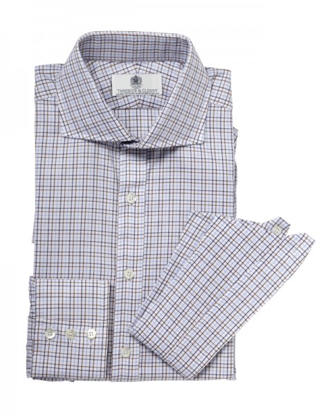 The Glenny Jermy city shirt in three different coloured checks with a three-button cuff. A treat for a plain suit.