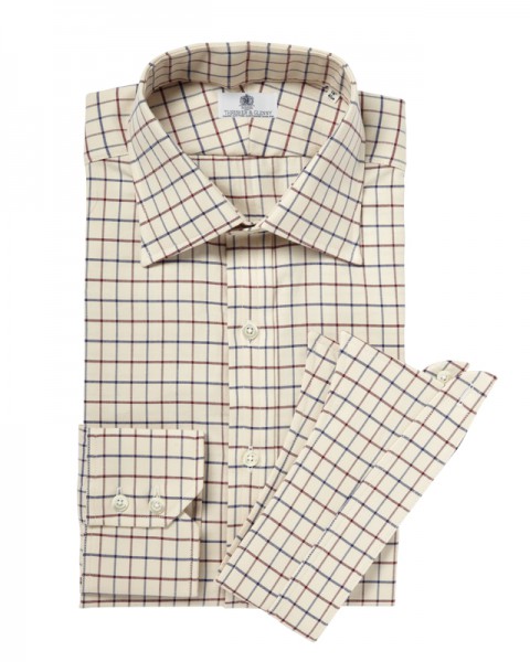 The Glenny country shirt in thirteen warming checks and, for once, a breast pocket. Two-button cuffs, naturally.