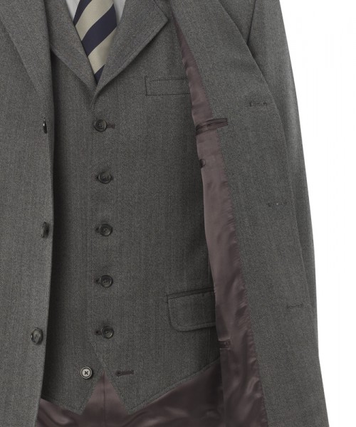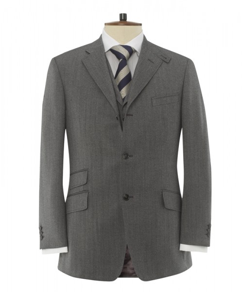 The Glenny is a suit in which one can actually pursue country pursuits. The action back is one clue, the storm collar and buttonhole another. The fabric – sober in a swatch, but remarkably effective once made up - marks out the wearer as one who only needs a new suit because the last wore out from vigorous use.