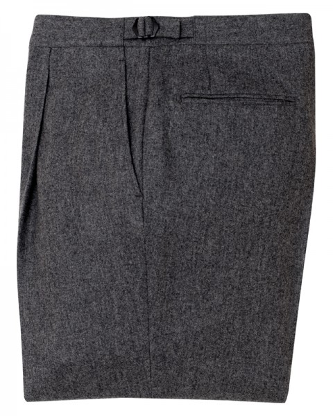 The Holy Grail for many men of sound but firm mind: a flannel trouser without belt loops and a single pleat. Eureka!