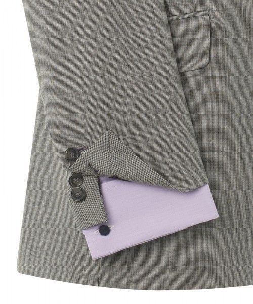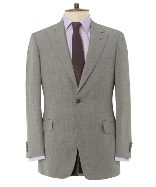 Mr Thresher always liked uncluttered lines that echo the times. This resonates with ours, having but one button to the front, four kissing (yet still opening) buttons on the cuff, a peaked lapel, a single vent and frog mouth pockets to the trouser. Set off by the tiniest puppytooth check.