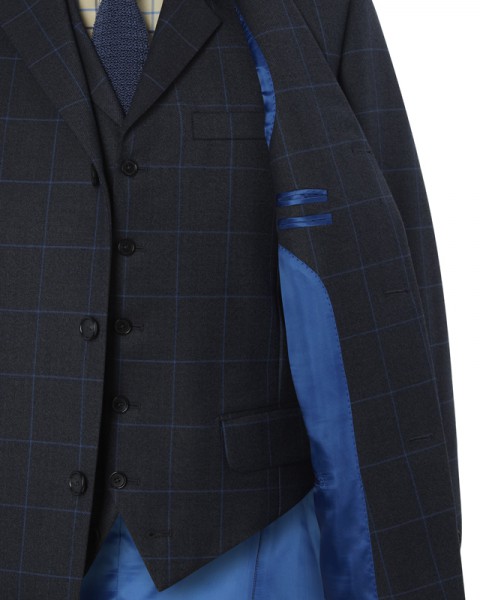 Even Mr T recommends three buttons beyond the office. Twinned with a five-button notch-lapel waistcoat and some dashing fabrics, the effect is striking: forward-thinking on a foundation of tradition, rather like Coventry cathedral. Or those tiny fish & chips they serve at openings. Or a late Hardy poem. Insert your own simile here.