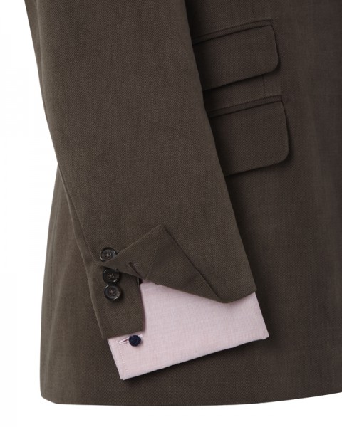 In the thick twill known sometimes as Bedford cord, with a slight texture to the weave, no-one – at least beyond media circles - will mistake this for your usual office attire. Carries the extra fizz of hacking and ticket pockets.